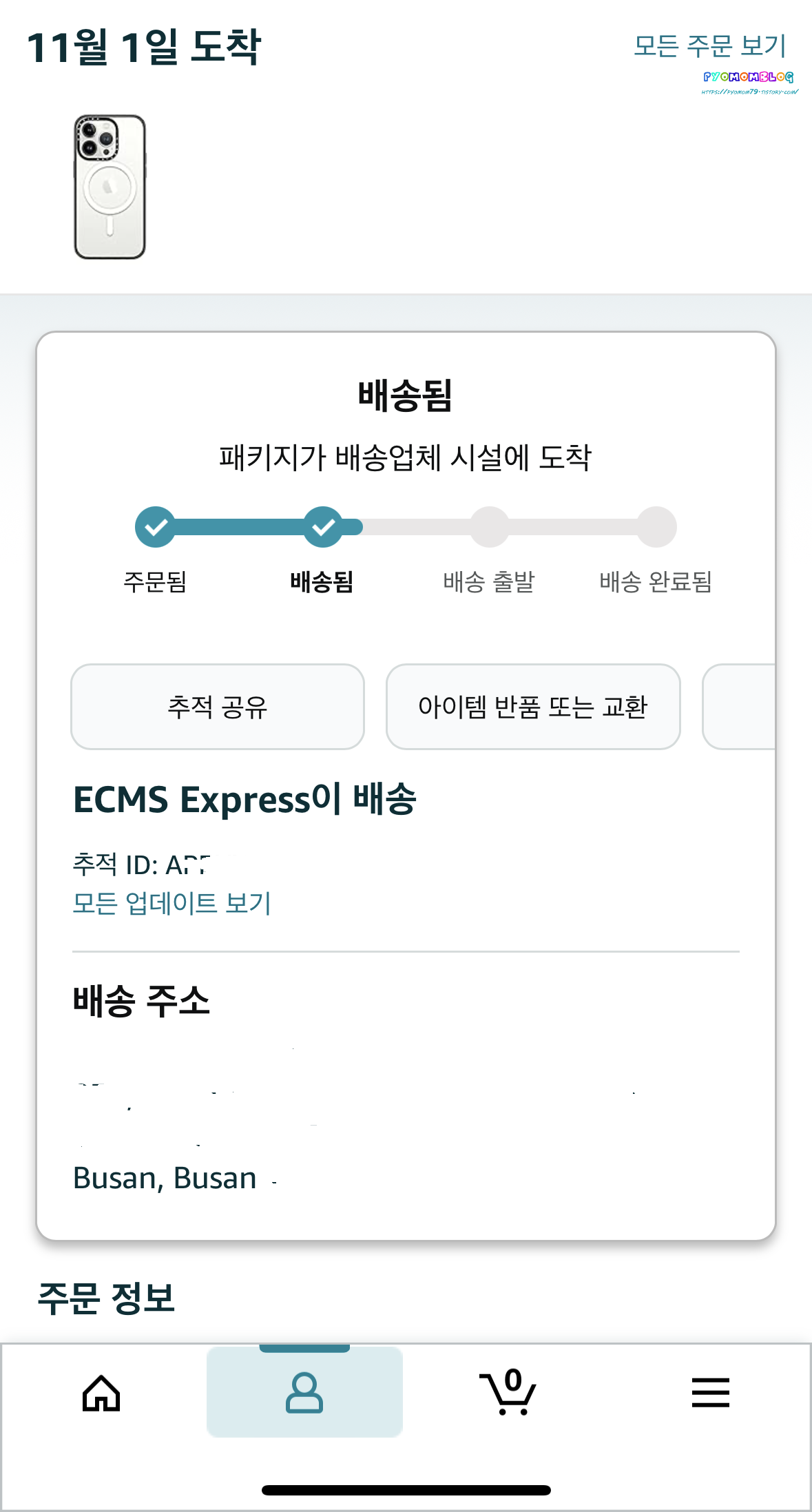 다음날 조회를 해보니, 배송이 시작되었네요