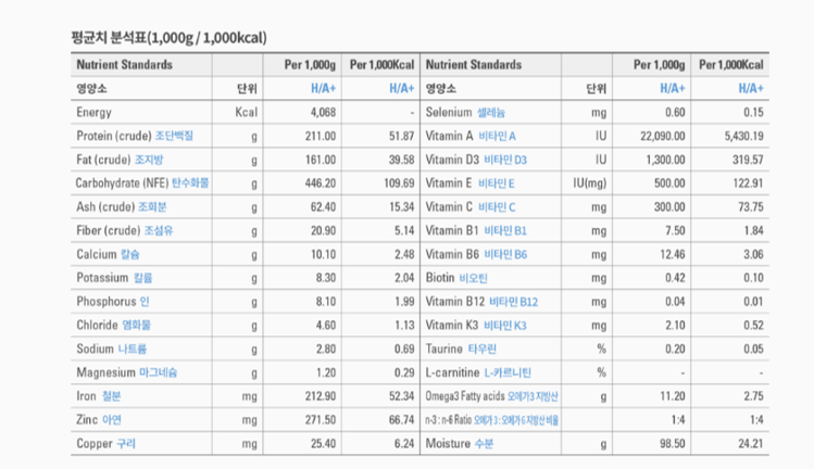 사료만 먹어도 영양분이 결핍되지 않게