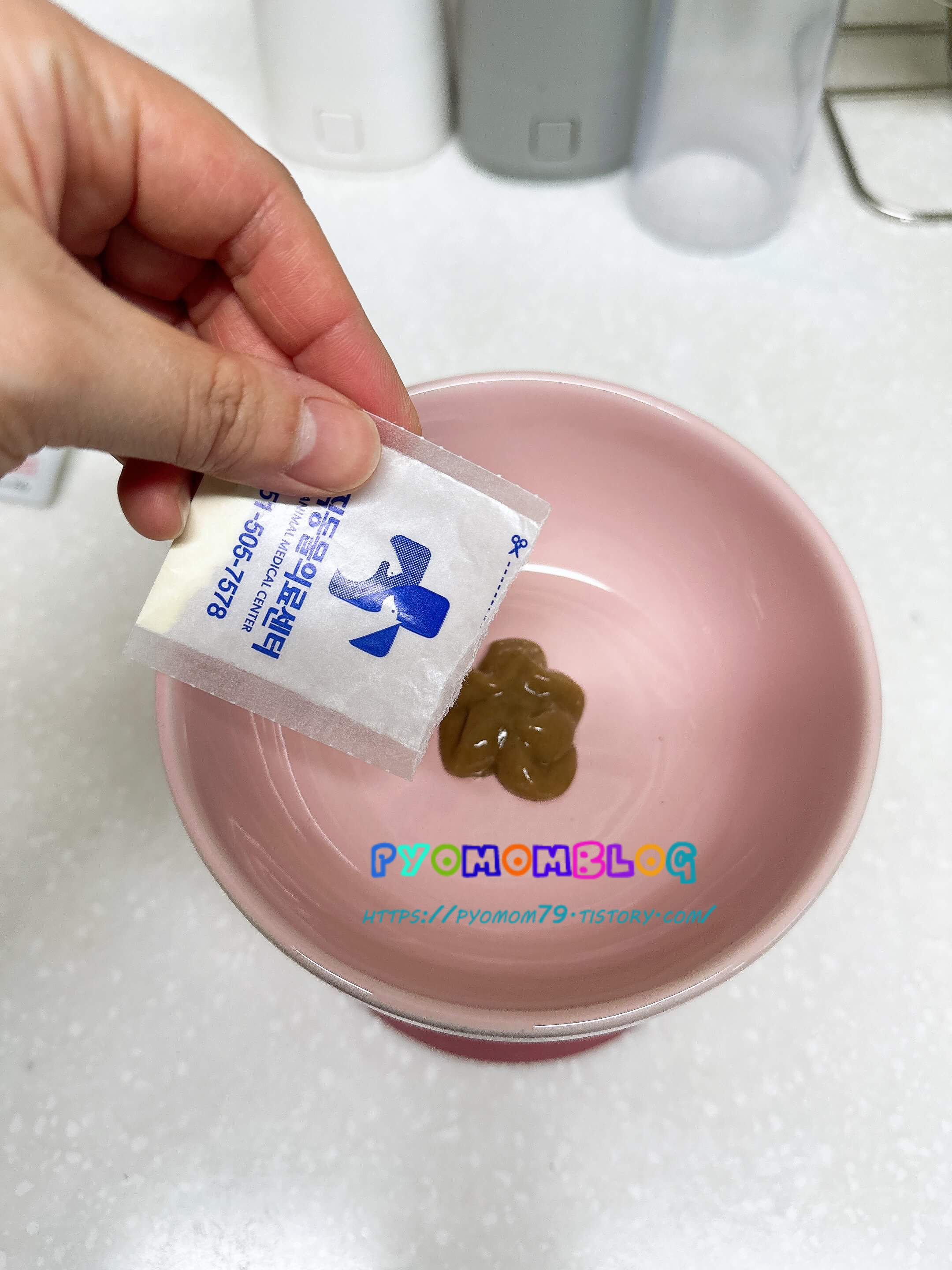 그냥 간식그릇에 보조제와 가루약을 적당히 섞어서 주면 된답니다.